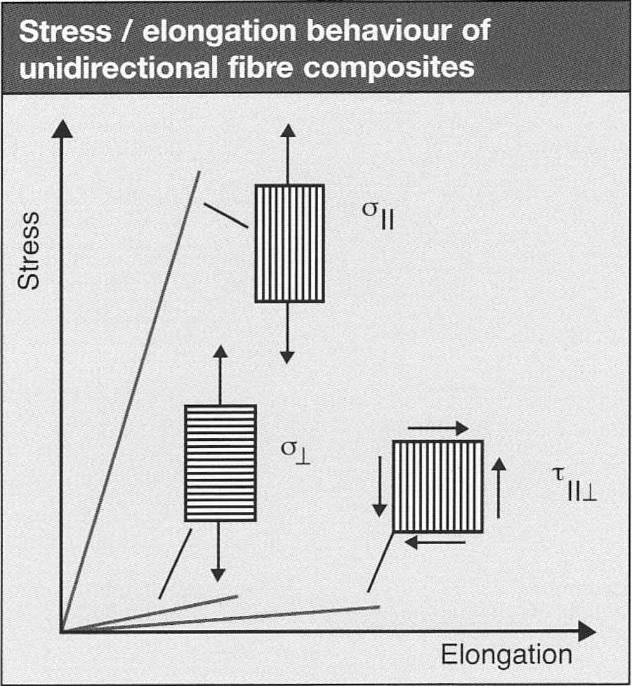In order to conduct computational analysis of fibre composite materials, you need to know the elasticity and modulus of rigidity for the unidirectional single layer. Unidirectional construction leads to greater rigidity and stiffness in the direction of the fibres than can be achieved with a shear or transfer layout.